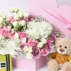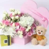 The Pure Heart Flower Patchi features delicate flowers that symbolize love and friendship. Each petal is carefully arranged to create a stunning visual display that will captivate anyone who receives it. Accompanying this floral masterpiece is an adorable teddy bear, known for its classic irresistible charm. This snugly plush teddy is perfect for hugging, providing comfort and a sense of warmth, making it a beloved companion for both children and adults alike.