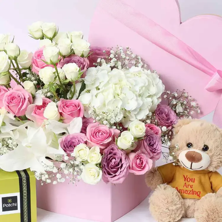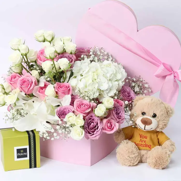 Introducing the Pure Heart Flower Patchi and Teddy—a perfect gift set that beautifully combines the elegance of nature with the warmth of a cuddly companion. This exquisite combination is designed to spread joy and affection, making it an ideal present for anniversaries, birthdays, or just to show you care. Each element of this set has been thoughtfully selected to create lasting memories and a genuine emotional connection.